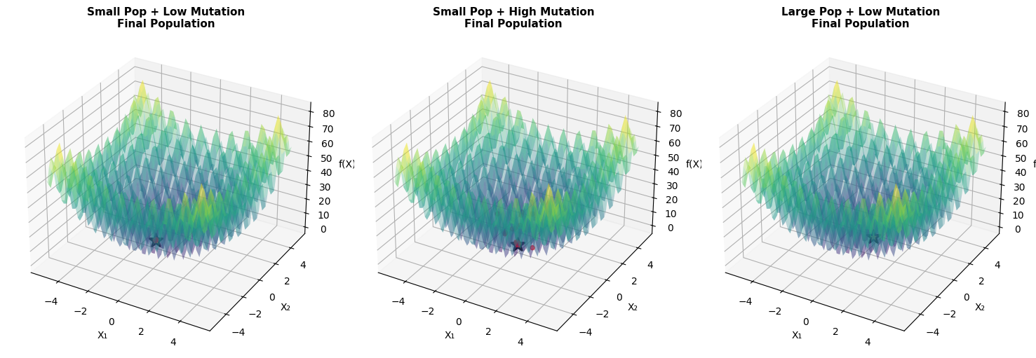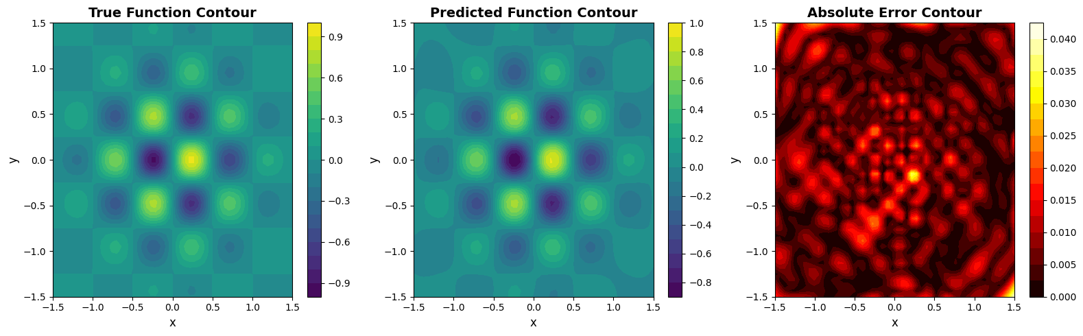 - 3D Surface Plots: Compare true function, predictions, and errors