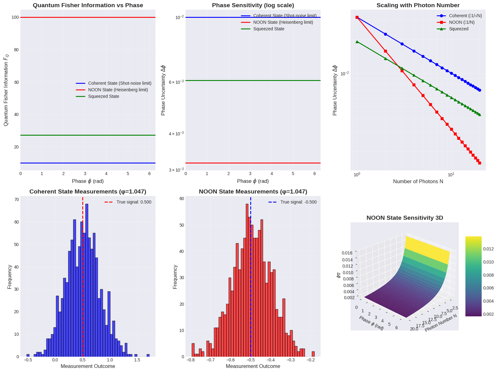 Panel 5 (3D Parameter Space): Maps the fidelity landscape over two rotation angles (θ1,θ2). The peaks and valleys reveal the optimization challenge - there are multiple local maxima. The optimal parameters lie near (π/2,π/4) in this simplified model, shown by the bright region. This non-convex landscape explains why gradient descent can fail.